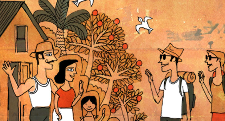 Listen to a presentation about community tourism and put the presentation slides in the correct order. First you will hear an introduction and outline of what will be talked about, then you will hear information represented by the four slides.