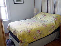The bedroom is next to the bathroom. The table, armoire and bunk beds go here. Leave them in the middle of the room.
