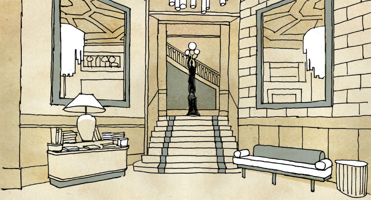 Many of the original elements of the building have been conserved, such as the impressive marble staircase, the original parquet and mosaic floors and wood panelling in many of the rooms, not to mention the embellished painted ceilings, floors and walls in some of the rooms. Now refurbished, this beautiful building, so full of character, history and elegance, can be appreciated and enjoyed by visitors to this wonderful city.