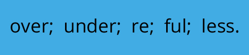 useful, hopeless, homeless, overpriced, overused verbs: oversleep, overwork, overspend, undercook |