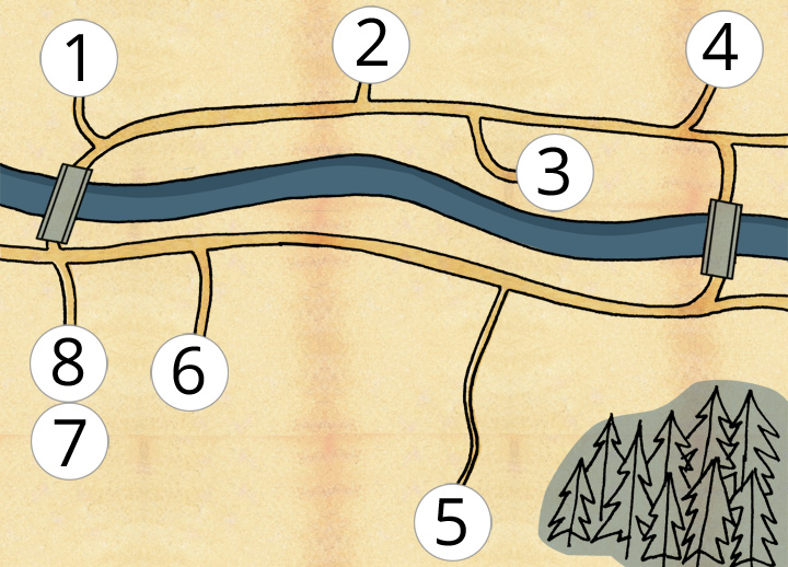 In this group of exercises you will listen to a description of a children's holiday camp. Before you listen, check that you know the points of the compass in English. Put the words in the compass.